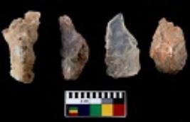 | Description / विवरण | There are n 4 utilized flake cores. There are multi directional irregular scar pattern on them. Two are tapering at one end and two have sharp edges. |