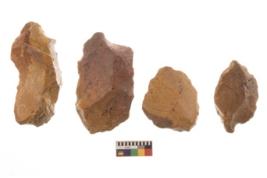 | Description / विवरण | There are n 4 utilized flakes. There are multi directional irregular scar pattern on both dorsal and ventral face of the flakes. One has round edge at one end and three have tapering edges. |