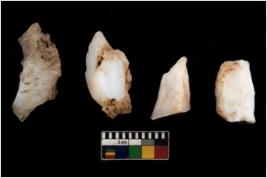 | Description / विवरण | There are n 4 utilized flake cores. There are multi directional irregular scar pattern on them. Two have sharp edge and two are tapering at one end. |