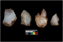 | Description / विवरण | There are n 4 utilized flake cores. There are multi directional irregular scar pattern on them. Two have sharp edges and two have blunted edges. |