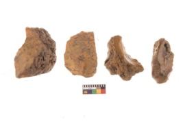 | Description / विवरण | There are n 4 utilized flakes. There are multi directional irregular scar pattern on both dorsal and ventral face of the flakes. One has blunt edge and three have sharp edges. |
