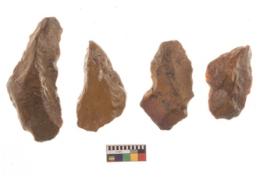 | Description / विवरण | There are n 4 utilized flakes. There are multi directional irregular scar pattern on both dorsal and ventral face of the flakes. Two have sharp edges and two have tapering edges. |