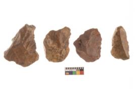 | Description / विवरण | There are n 4 utilized flakes. There are multi directional irregular scar pattern on both dorsal and ventral face of the flakes. One has sharp and three have tapering at one end. |
