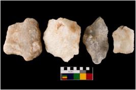 | Description / विवरण | Specimen of fluted cores having several broad fluted marks indicating the detached blades from it. |