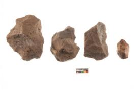 | Description / विवरण | There are n 4 utilized flakes. There are multi directional irregular scar pattern on both dorsal and ventral face of the flakes. One has blunt and three have tapering at one end. |
