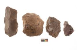 | Description / विवरण | There are n 4 utilized flakes. There are multi directional irregular scar pattern on both dorsal and ventral face of the flakes. Three have sharp edges and one has blunt edge. |