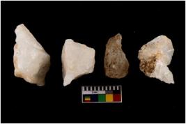 | Description / विवरण | Specimen of fluted cores having several broad fluted marks indicating the detached blades from it. |