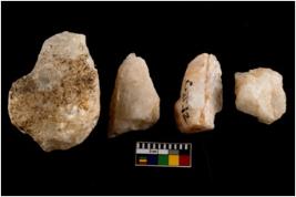| Description / विवरण | Specimen of fluted cores having several broad fluted marks indicating the detached blades from it. |