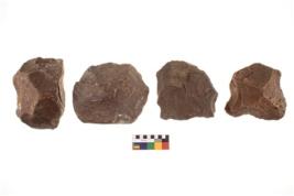 | Description / विवरण | here are n 4 utilized Chopper chopping tool and core. There are multi directional irregular scar pattern on both dorsal and ventral face of the Chopping. Three have tapering edges and one has sharp edge at one end. |