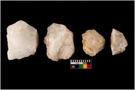 | Description / विवरण | Specimen of fluted cores having several broad fluted marks indicating the detached blades from it. |