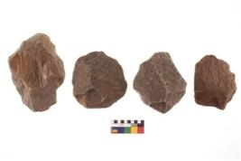 | Description / विवरण | here are n 4 utilized Chopper chopping tool and core. There are multi directional irregular scar pattern on both dorsal and ventral face of the Chopping. Three have round edges and one has sharp edge at one end. |