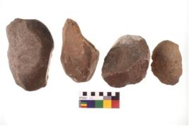 | Description / विवरण | here are n 4 utilized Chopper chopping tool and core. There are multi directional irregular scar pattern on both dorsal and ventral face of the Chopping. Three have sharp edges and one has blunt edge at one end. |