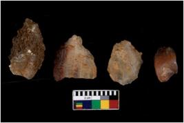 | Description / विवरण | There are n 4 utilized flake cores. There are multi directional irregular scar pattern on them. One has sharp edge and three have round edges. |