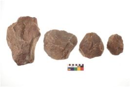 | Description / विवरण | here are n 4 utilized Chopper chopping tool and core. There are multi directional irregular scar pattern on both dorsal and ventral face of the Chopping. Two have sharp edges and two have round edges at one end. |