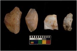 | Description / विवरण | There are n 4 utilized flake cores. There are multi directional irregular scar pattern on them. Two are tapering at one end and two have blunted edges. |