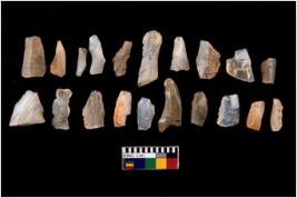 | Description / विवरण | There are n-20 of microliths, among them 6 are quartz, and 14 are of chert. Some of them are partially broken. They show variation in colour, size and shape. Some of them are blunted back baldes, points, triangles, trapezes, crescent and truncated blades. |
