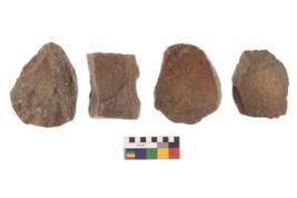 | Description / विवरण | here are n 4 utilized Chopper chopping tool and core. There are multi directional irregular scar pattern on both dorsal and ventral face of the Chopping. Three have tapering edges and one has e sharp edge at one end. |