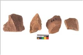 | Description / विवरण | There are n 4 utilized flake cores. There are multidirectional irregular scar pattern on both dorsal and ventral face of the flake cores. One has sharp edges and three have blunted edges. |