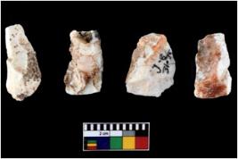 | Description / विवरण | Four utilised worked cores with sharp edges. Some of them are tapering at one end. |