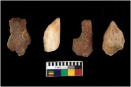| Description / विवरण | There are n 4 utilized flake cores. Out of them three are made up of Chert and one is made up of Chalcedony. There are multi directional irregular scar pattern on them. Two have sharp edge and two are tapering at one end. |
