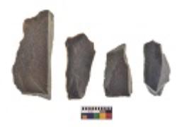 | Description / विवरण | There are n 4 utilized flake cores. There are multi directional irregular scar pattern on both dorsal and ventral face of the flake cores. All of them are tapering at one end. |