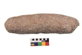 | Description / विवरण | Specimen of an oval shaped saddle quern. It is creamish in colour and smooth in texture. It is round in cross section. |