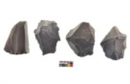 | Description / विवरण | There are n 4 utilized flake cores. There are multi directional irregular scar pattern on both dorsal and ventral face of the flake cores. Two have blunted edges and two have round edges. |
