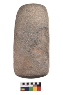 | Description / विवरण | Specimen of a roughly rectangular shaped saddle quern. It is blackish in colour and smooth in texture. It has flat base. |
