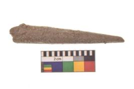 | Description / विवरण | Specimen of a polished bone point made on long bone, it has pointed top, It is rectangular cross section in shape |