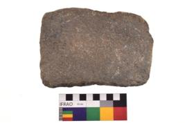 | Description / विवरण | Specimen of a rectangular shaped saddle quern. It is blackish in colour and smooth in texture. It has flat base. |
