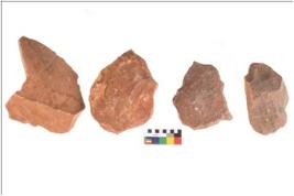 | Description / विवरण | There are n 4 utilized flake cores. There are multidirectional irregular scar pattern on both dorsal and ventral face of the flake cores. One has sharp edges and three have blunted edges. |