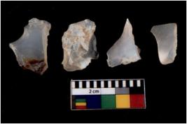 | Description / विवरण | There are n 4 flakes tool; there are large flakes with sides trimmed, Marks of secondary flaking are present on the both the faces. |