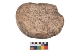 | Description / विवरण | Specimen of a roughly oval shaped smasher with smooth surface. It is creamish in colour and has flat base. |