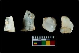 | Description / विवरण | Four utilised worked cores with sharp edges. Some of them are tapering at one end. |