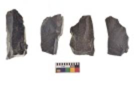 | Description / विवरण | There are n 4 utilized flake cores. There are multi directional irregular scar pattern on both dorsal and ventral face of the flake cores. All of them are tapering at one end. |