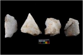 | Description / विवरण | There are n 4 of utilized worked cores and show multidirectional irregular scar pattern on both dorsal and ventral sides.They have sharp edges. |