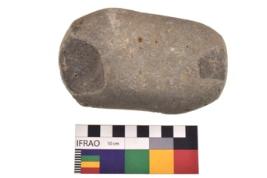 | Description / विवरण | Specimen of an oval shaped saddle quern with smooth surface. It is blackish in colour and has flat base. |