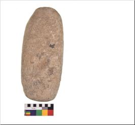 | Description / विवरण | Specimen of a roughly rectangular shaped saddle quern with smooth surface. It is creamish in colour and round in cross section. |