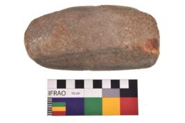 | Description / विवरण | Specimen of a roughly rectangular shaped saddle quern with smooth surface. It is brownish in colour and has flat base. |