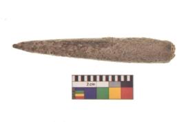 | Description / विवरण | Specimen of a bone point made on long bone, it is rectangular cross section in shape with flat and thick body. |