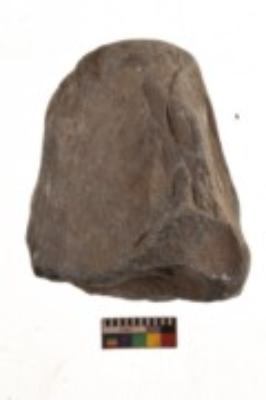 | Description / विवरण | Specimen of an uneven shaped smasher with rough surface. It is blackish in colour and has flat base. |