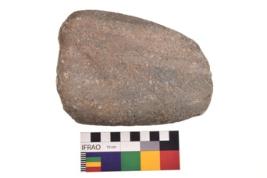 | Description / विवरण | Specimen of a roughly oval shaped saddle quern. It is blackish in colour and smooth in texture. It has flat base. |