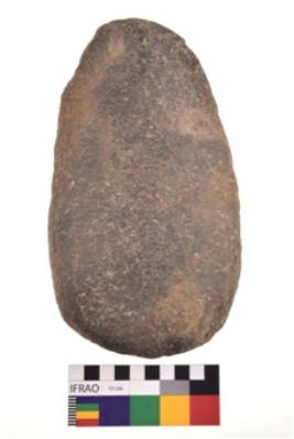 | Description / विवरण | Specimen of an oval shaped saddle quern. It is blackish in colour and smooth in texture. It is round in cross section. |