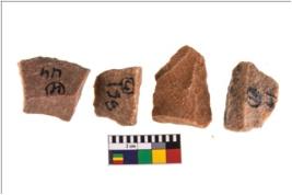 | Description / विवरण | Specimen of flake tools with prominent flaking marks. They are made up of a short flakes with sides trimmed. |