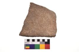 | Description / विवरण | Specimen of a roughly rectangular shaped saddle quern. It is brownish in colour and smooth in texture. It has flat base. |