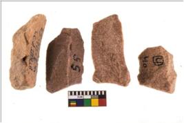 | Description / विवरण | Specimen of flake tools with prominent flaking marks. They are made up of a short flakes with sides trimmed. |