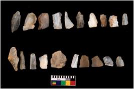 | Description / विवरण | There are n-20 of microliths, among them 1 is quartz, and 19 are of chert. Some of them are partially broken. They show variation in colour, size and shape. Some of them are blunted back blades, points, triangles, trapezes, crescent and truncated blades. |