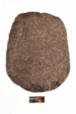 | Description / विवरण | Specimen of a roughly oval shaped smasher with rough surface. It is brownish in colour and has flat base. |