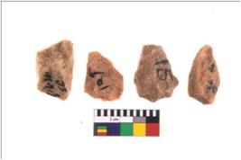 | Description / विवरण | There are n 4 utilized flake cores. There are multidirectional irregular scar pattern on both dorsal and ventral face of the flake cores. One has sharp edges and three have blunted edges. |