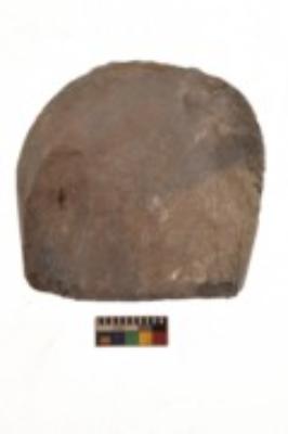 | Description / विवरण | Specimen of a roughly oval shaped smasher with smooth surface. It is brownish in colour and has flat base. |